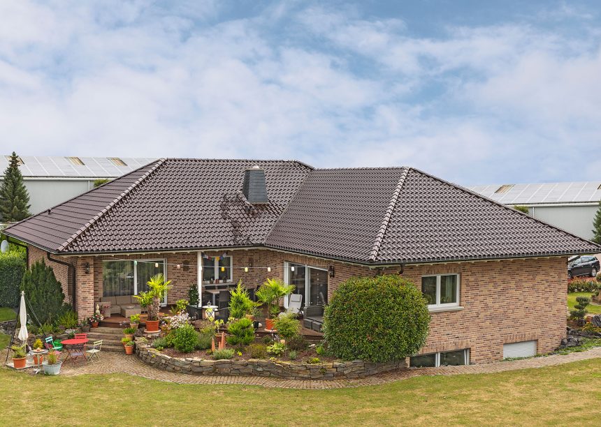 Vorm, kleur en afwerking van keramische dakpannen moeten perfect aansluiten bij het geheel. De keuze voor de OVH-dakpan Z5 met de afwerking kastanjebruin, een hoogwaardige glazuur uit onze Glazuur Collection Avantgarde, past hier perfect. Dak en gevel vullen elkaar visueel prachtig aan.
