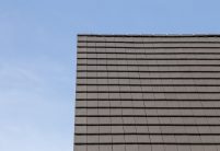 Een inspirerend object met een bakstenen gevel en een ultramodern, strak zadeldak dankzij de vlakke dakpan met de bijzondere afwerking edel-leigrijs.