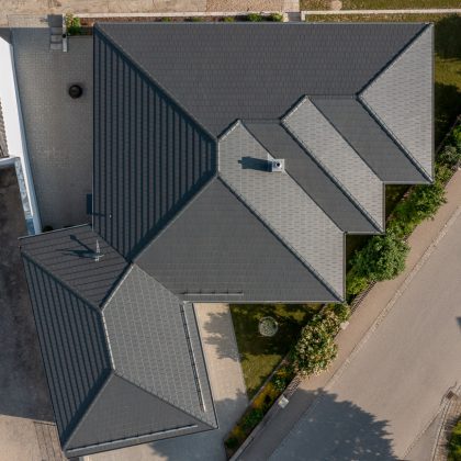 Ons 3-zijdige broekstuk is de kroon op elk schild- of wolfsdak dat met onze vlakke dakpan Stylist is gedekt. Het broekstuk zorgt zowel visueel als technisch voor een fraaie overgang tussen vorst en hoekkeper en draagt bij aan een perfecte afwerking van het dak.