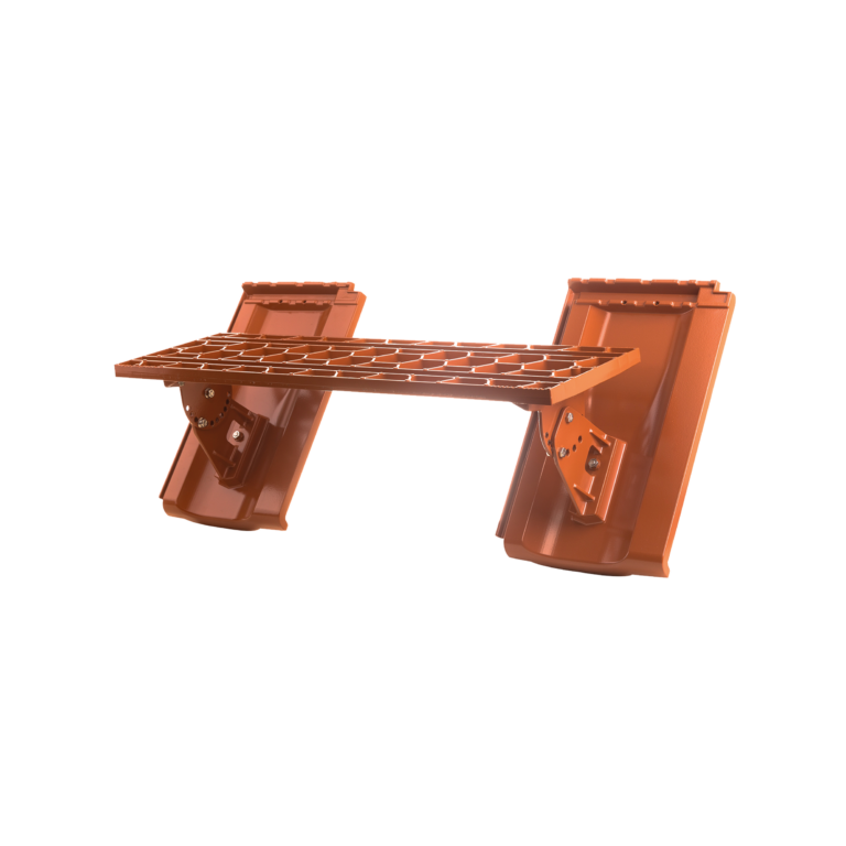 Met het lange rooster inclusief basisplaten van robuust aluminium is een veilige en stabiele stand op het dak gegarandeerd. Het beschikt over een antislipoppervlak en kan worden aangepast aan de specifieke dakhelling. De basiselementen zijn qua vorm en kleur perfect afgestemd op de Reformpan Z10, waardoor ze eenvoudig te monteren zijn en visueel harmonieus in het dakvlak passen.